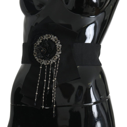 Dolce & Gabbana Black Crystal Brooch Wide Wai SATORIA Belt