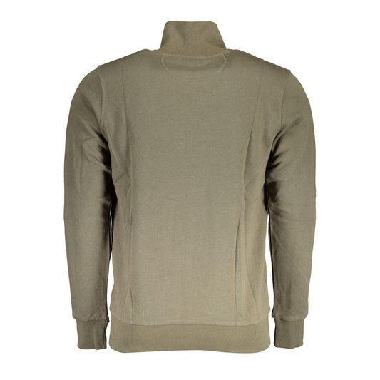 La Martina Green Cotton Men Sweater with Hood and Zip Pockets