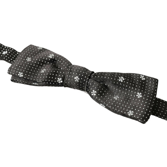 Dolce & Gabbana Black Patterned Silk Adjustable Men Neck Papillon Bow Tie