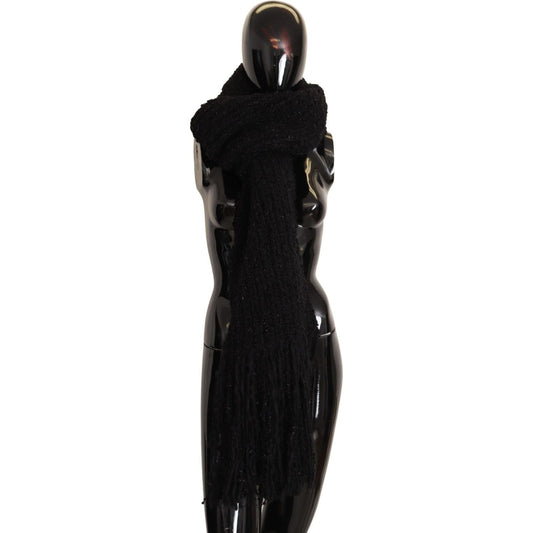 Dolce & Gabbana Black Virgin Wool Knitted Unisex Warmer Shawl Scarf