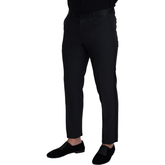 Dolce & Gabbana Black Wool Men Skinny Mid Waist Pants