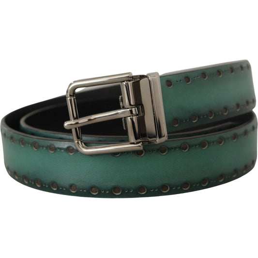 Dolce & Gabbana Green Giotto Leather Silver Metal Buckle Belt
