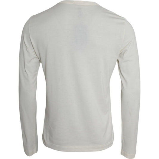 Dolce & Gabbana Off White Cotton Round Neck Pullover Sweater