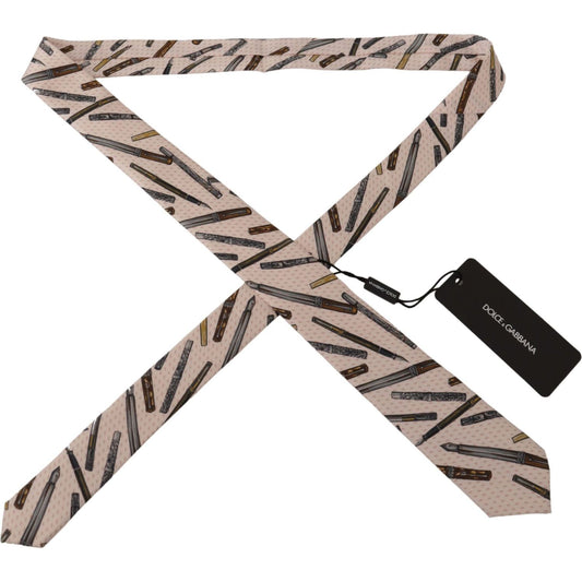 Dolce & Gabbana Pink Pen Dots Print 100% Silk Adjustable Neck Accessory Tie