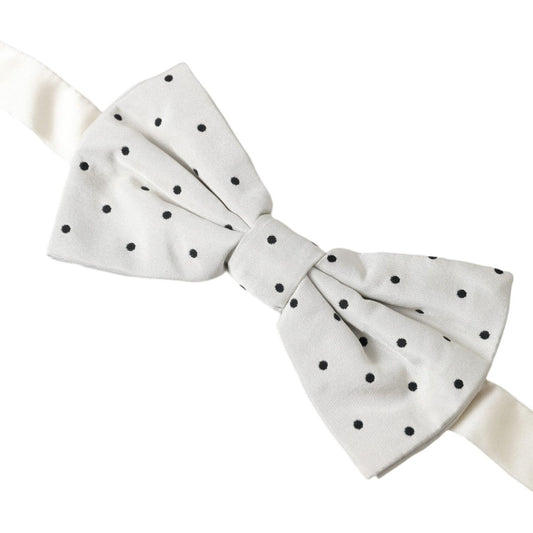 Dolce & Gabbana White Black Polka Dot Polyester Bow Tie Men