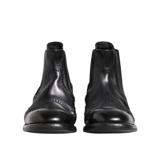 Dolce & Gabbana Black Leather Chelsea Men Ankle Boots Shoes