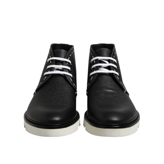 Dolce & Gabbana Black Leather Men Short Boots Lace Up Shoes