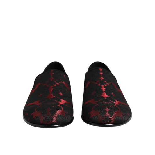 Dolce & Gabbana Red Black Jacquard Slip On Men Loafers Shoes