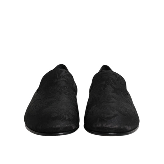 Dolce & Gabbana Black Brocade Men Slip On Loafer Dress Shoes