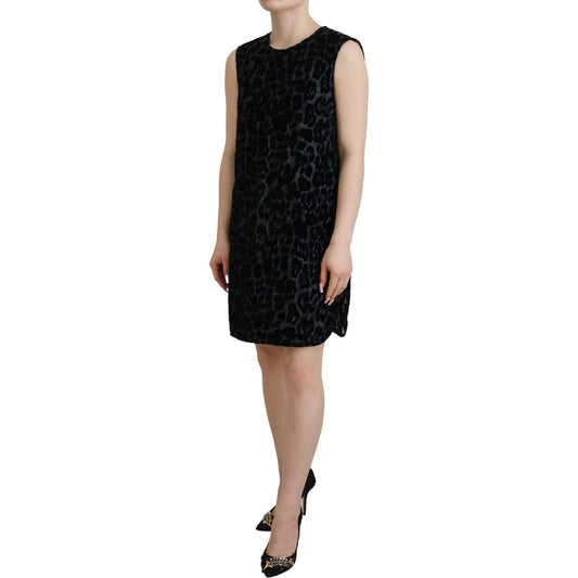 Dolce & Gabbana Black Leopard Shift Mini Polyester Dress