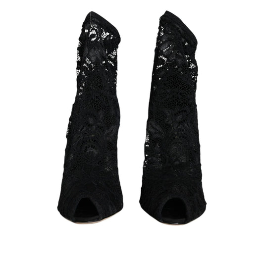 Dolce & Gabbana Black Lace Stretch Heels Mid Calf Boot Shoes