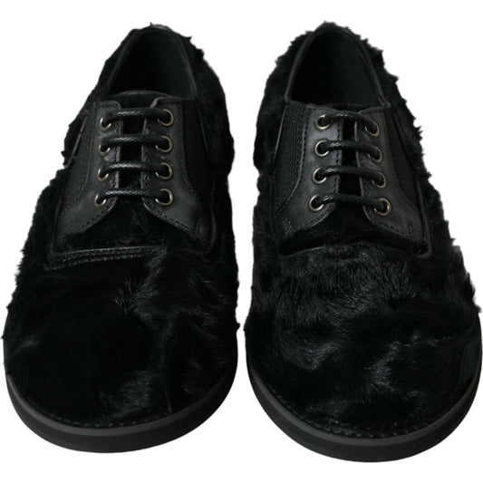 Dolce & Gabbana Black Stable Fur Derby SAN PIETRO Dress Shoes