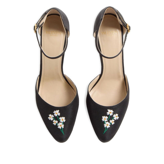 Valentino Garavani Hi Dolly Pumps In Fabric With Floral Embroidery 105mm