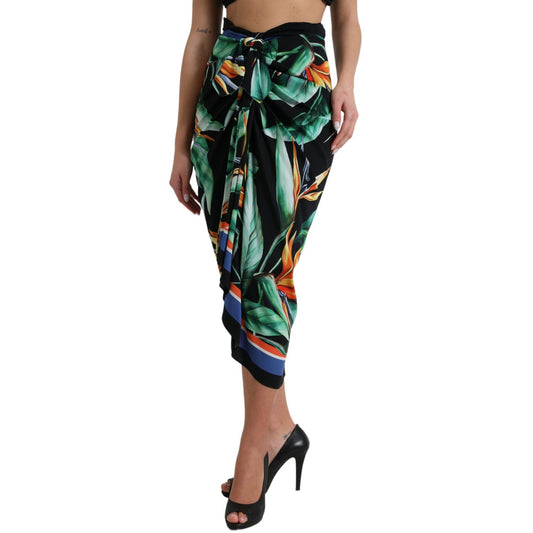 Dolce & Gabbana Black Strelitzia High Waist Wrap Midi Skirt