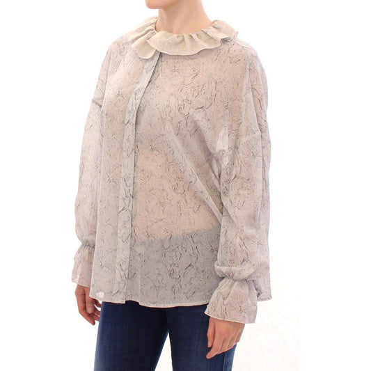 Dolce & Gabbana Black Silk Floral Embroidered Polo Top