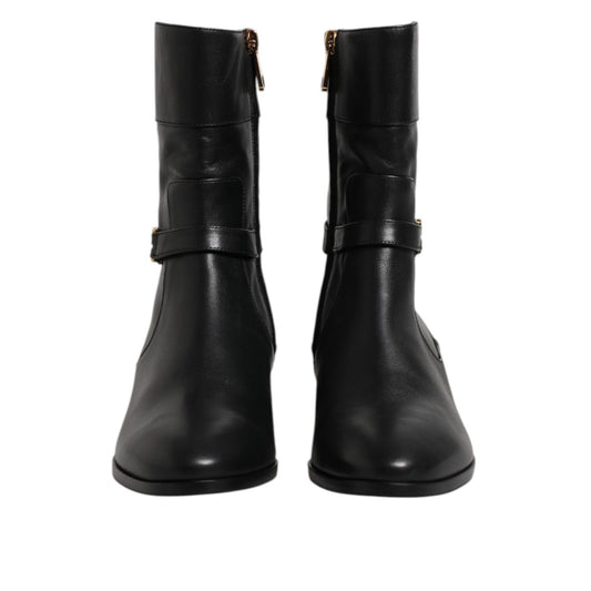 Dolce & Gabbana Black Jackie Leather Mid Calf Boots Shoes