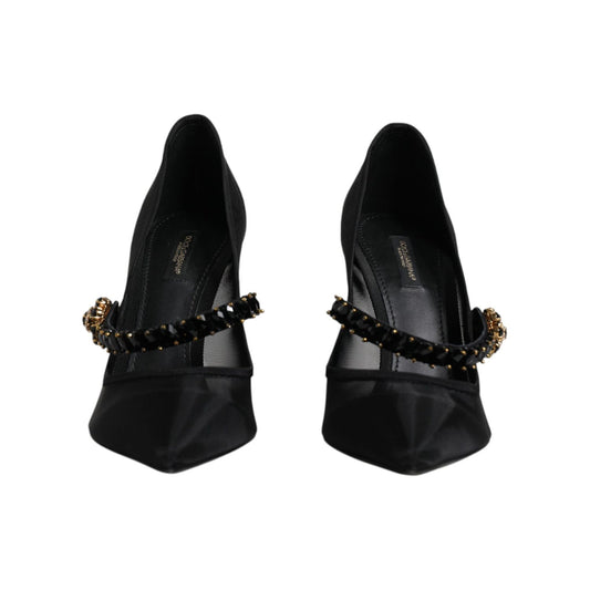 Dolce & Gabbana Black Mesh Mary Jane Crystal Heel Pump Shoes