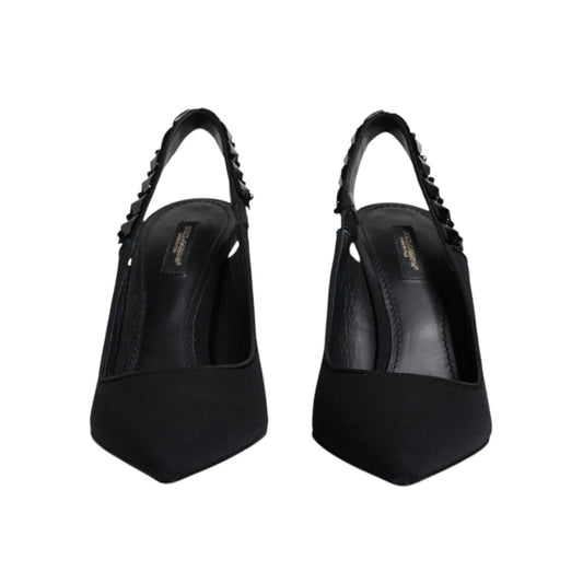 Dolce & Gabbana Black Embellished Charmeuse Slingback Shoes