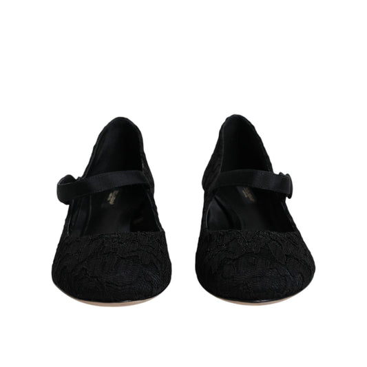 Dolce & Gabbana Black Mary Jane Taormina Lace Pumps Shoes