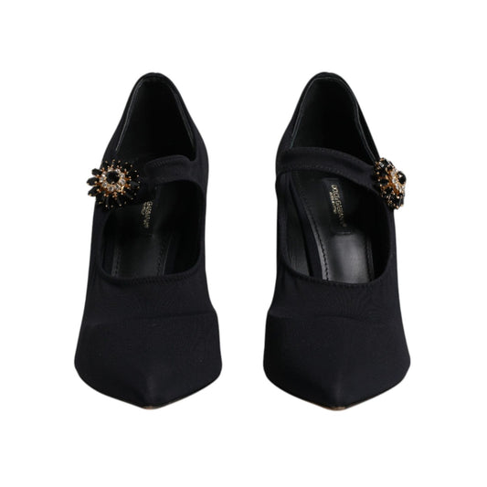 Dolce & Gabbana Black Mary Jane Jersey Crystal Pumps Shoes