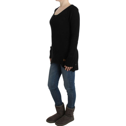 Ermanno Scervino Black Wool Blend Stretch Long Sleeve Sweater