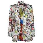 Flower print polyester single-breasted blazer jacket. Printed single-breasted jacket Size and Fit - This piece fits true to size. We recommend you get your regular size. Model is 1,75m / 5ft 8in wearing size S
