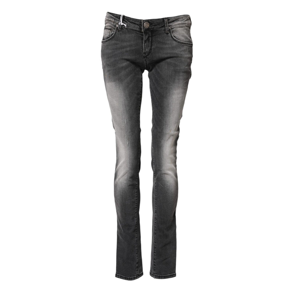 Acht Dark Gray Cotton Slim Fit Denim Low Waist Denim Jeans