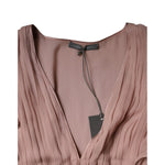 Alberta Ferretti Brown Silk Short Sleeves V-neck Pleated Top