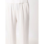 white wide leg high-waisted pressed crease side slits elasticated waistband two side slit pockets Cady elasticated trousers Size and Fit - This piece fits true to size. We recommend you get your regular size. Model is 1,75m / 5ft 8in wearing size 40 (IT)