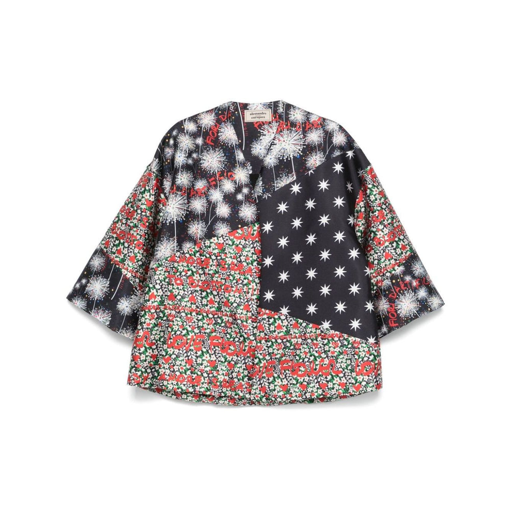 black/multicolour twill weave mix print crossover neck drop shoulder half-length sleeves open front full lining straight hem Printed kimono Size and Fit - This piece fits true to size. We recommend you get your regular size. Model is 1,75m / 5ft 8in wearing size 40 (IT)