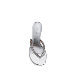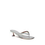Amina Muaddi’s Gigi Sandals feature an open round toe and a flip-flop upper embellished with sparkling rhinestones. The kitten heel with metallic finish lends a touch of modern elegance, making these sandals perfect for a sophisticated and shiny look.