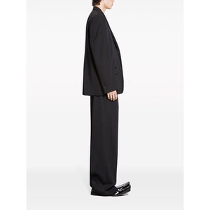 single-breasted wool blazer from BALENCIAGA featuring black, wool, notched lapels, shoulder pads, long sleeves, buttoned cuffs, front button fastening, chest welt pocket, two side flap pockets and straight hem. Wool single-breasted blazer jacket Size and Fit - This piece fits true to size. We recommend you get your regular size. Model is 1,84m / 6ft 1in wearing size M