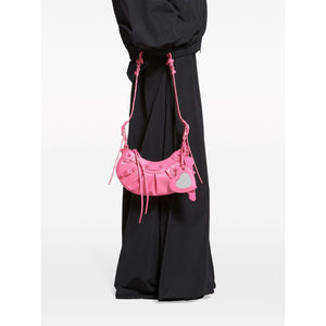 Rosa Bubblegum, skin, detail with studs, napper detail, adjustable shoulder strap, higher closure with zip, unique compartment and mirror. Le Cagole XS leather shoulder bag Size and Fit - Width 10,24 in / 26 cm
