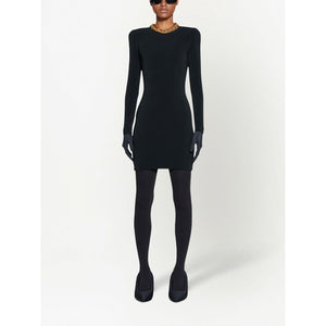 Nero, design elasticizzato, taglio slim, scollo rotondo, chiusura posteriore con zip, maniche lunghe e altezza sopra al ginocchio. Mini dress Size and Fit - This piece fits true to size. We recommend you get your regular size. Model is 1,75m / 5ft 8in wearing size 36 (FR)
