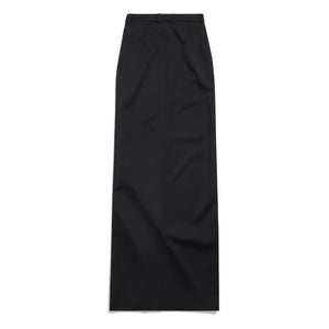 black high-waisted belt loops concealed side zip fastening tailored cut floor-length side slit Wool midi skirt Size and Fit - This piece fits true to size. We recommend you get your regular size. Model is 1,75m / 5ft 8in wearing size 36 (FR)