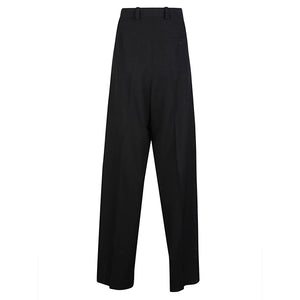 Black trousers, double front, large fit, pata with hidden zip, two front pockets and a pocket behind with button, with folds on the leg, six passers -by in the waist, medium waist,. Wool trousers Size and Fit - This piece fits true to size. We recommend you get your regular size. Model is 1,84m / 6ft 1in wearing size M