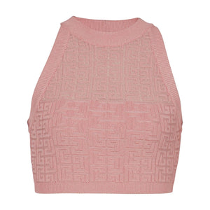 pink knitted construction monogram pattern crew neck sleeveless ribbed trim straight hem Monogram halterneck top Size and Fit - This piece fits true to size. We recommend you get your regular size. Model is 1,75m / 5ft 8in wearing size 36 (FR)