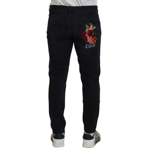 Dolce & Gabbana Black Angel Embroidery Skinny Denim Jeans