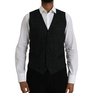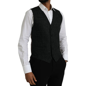 Dolce & Gabbana Black Brown Silk Waistcoat Dress Formal Vest