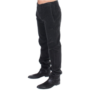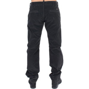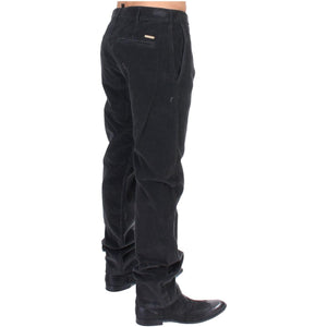 GF Ferre Black Corduroy Cotton Straight Fit Pants