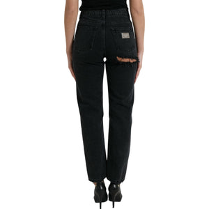Dolce & Gabbana Black Cotton High Waist Tattered Denim Jeans