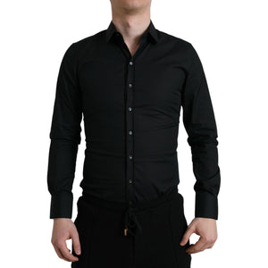 Dolce & Gabbana Black Cotton Stretch Slim Formal Dress Shirt
