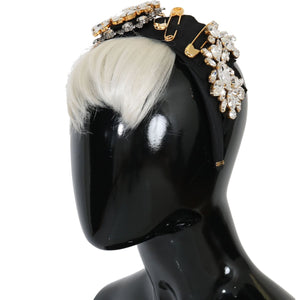Dolce & Gabbana Black Crystal White Hair Parrucchiera Headband Diadem