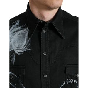 Dolce & Gabbana Black Floral Cotton Collared Dress Shirt