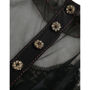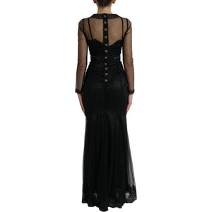 Dolce & Gabbana Black Floral Embroidery Mesh Tulle Gown Dress