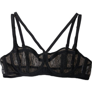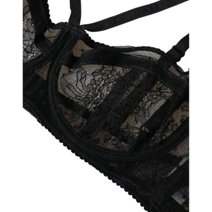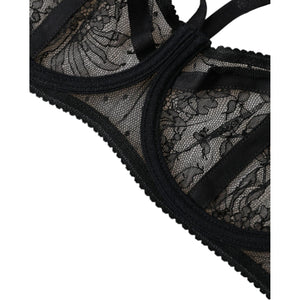Dolce & Gabbana Black Floral Lace Nylon Balconcino Bra Underwear