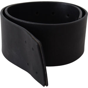 is crafted from leather fabric, this stylish belt featuring solid wide black design and no buckle fastening.