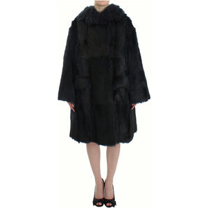 Dolce & Gabbana Black Goat Fur Shearling Long Jacket Coat