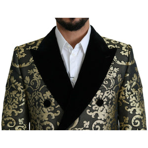 Absolutely stunning, 100% Authentic, brand new with tags Dolce & Gabbana Gold Black Jacquard Coat Sicilia Jacket features a double breasted two button closure and peak lapels.
