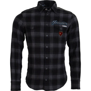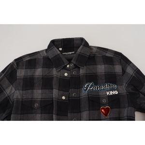 Dolce & Gabbana Black Gray Check Men Long Sleeves Shirt